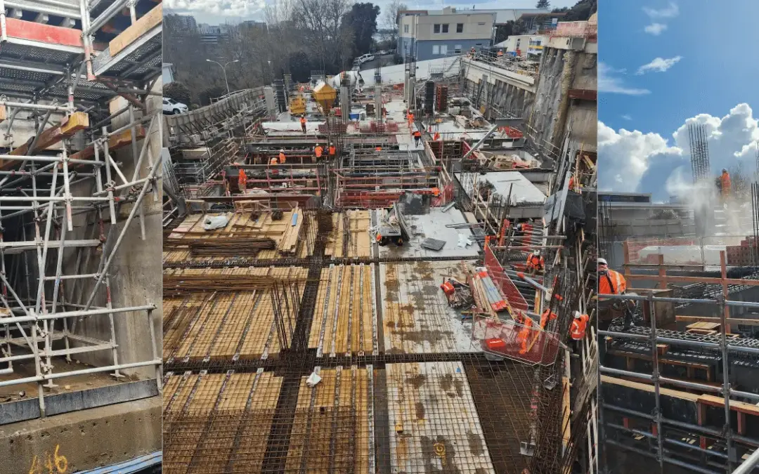 ADHB Update: Despite initial delays, progress on up to level 1 is now gaining momentum. The intricate nature of the work has contributed to the gradual pace, but the focus remains on delivering high-quality outcomes. Key features include a 5-story concrete structure with in-situ columns and beams, precast flooring, and complex formwork/falsework designs.
